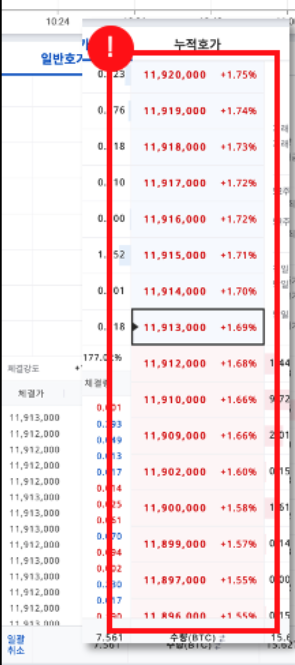 - 아래 그림의 호가창의 가격대을 선택 시 주문창의 매수가격에 입력됩니다.